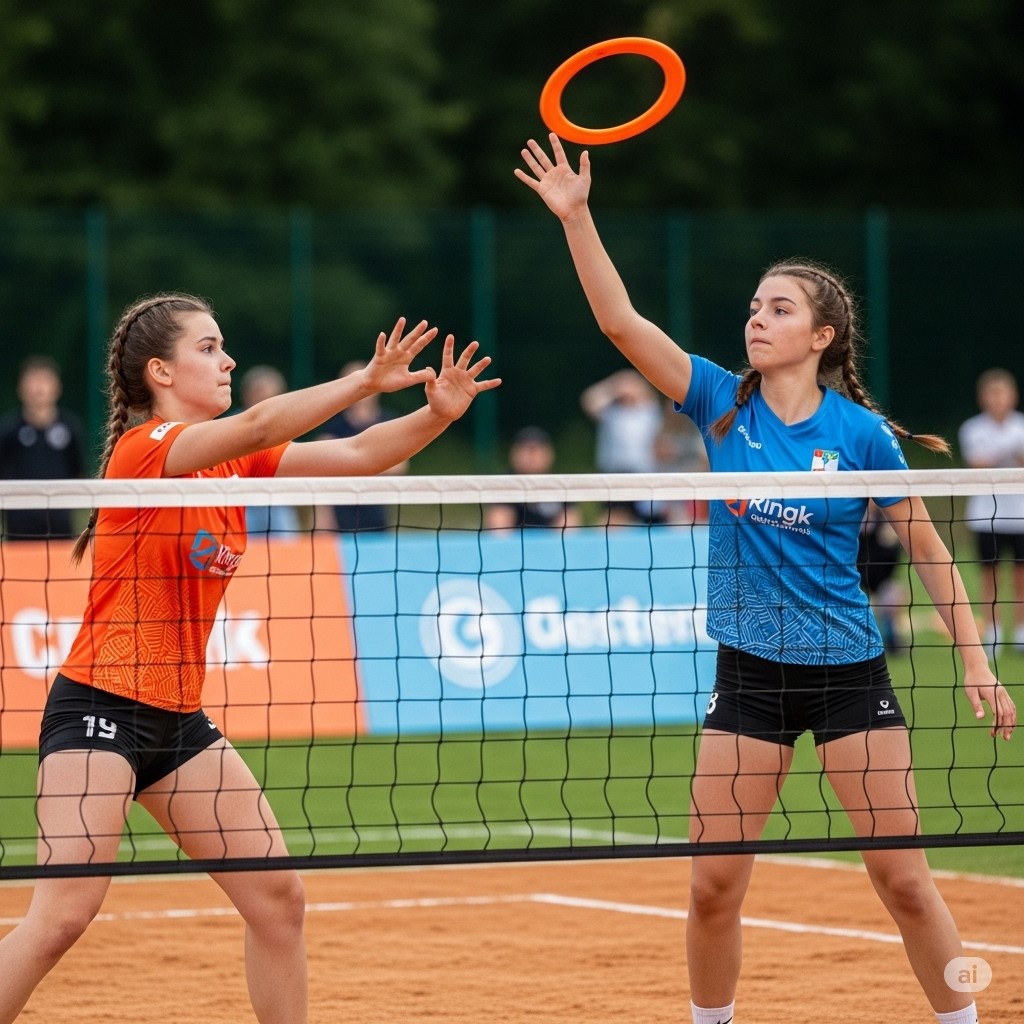 - Objective: Players aim to throw a rubber ring into the opponent’s court while preventing it from hitting the ground on their side.